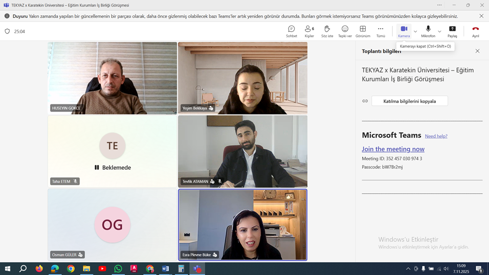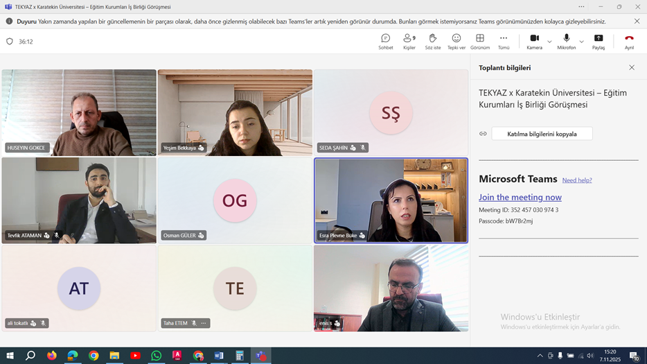 Toplantı, çevrim içi olarak gerçekleştirilmiş olup; sertifikasyon programları, Teknofest takımları için lisans sponsorlukları, SkillForce staj lisans destekleri ve muhtemel üniversite-sanayi iş birlikleri konularında karşılıklı görüş alışverişinde bulunuldu.